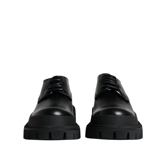 Dolce & Gabbana Black Leather Lace Up Men Derby Formal Shoes