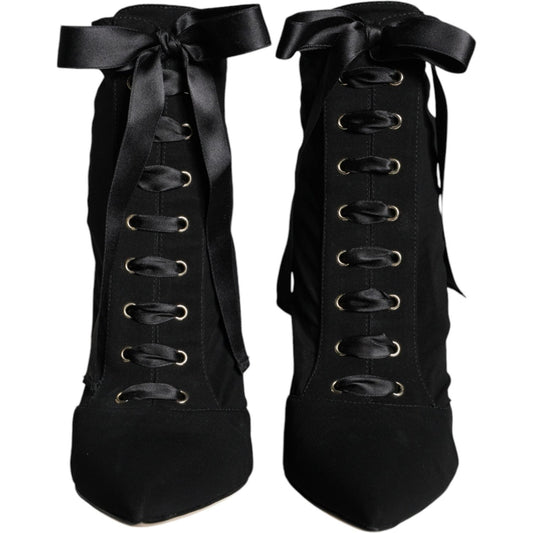 Dolce & Gabbana Black Lace Stretch Heels Mid Calf Boot Shoes