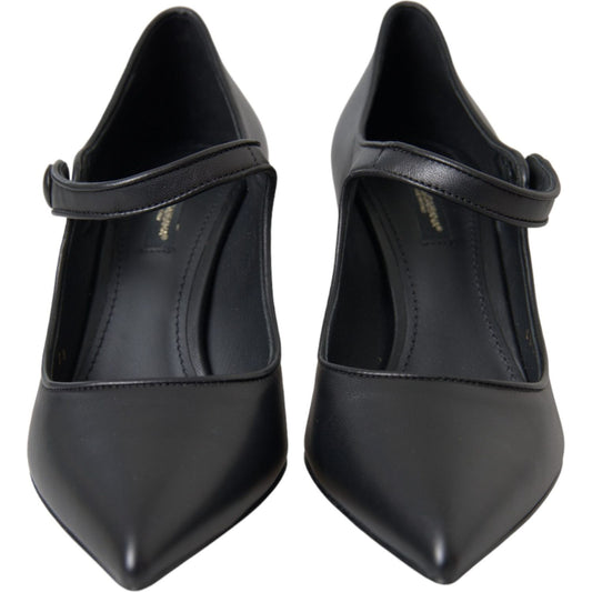Dolce & Gabbana Black Leather Logo Heels Mary Janes Pumps Shoes
