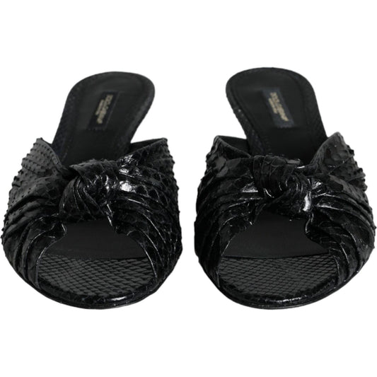 Dolce & Gabbana Black Exotic Leather Heels Slides Shoes