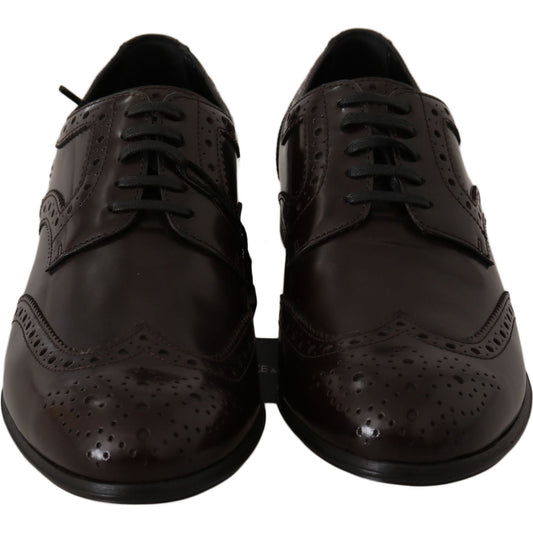 Dolce & Gabbana Brown Leather Broques Oxford Wingtip Shoes