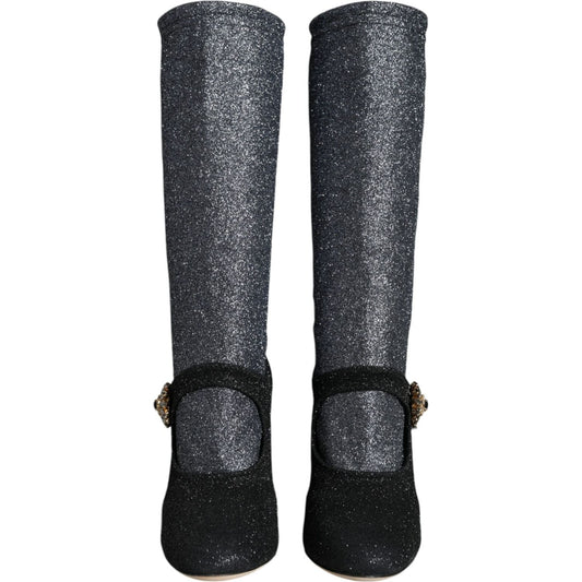 Dolce & Gabbana Black Stiletto Heels Mid Calf Boots Shoes