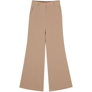 beige crepe texture belt loops at the waist two side slash pockets pressed crease rear elasticated waistband two rear jetted pockets wide leg concealed front button, hook and zip fastening Cady flared trousers Size and Fit - This piece fits true to size. We recommend you get your regular size. Model is 1,75m / 5ft 8in wearing size 40 (IT)