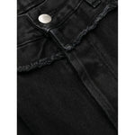 frayed-trim loose jeans from AMBUSH featuring black, cotton, denim, frayed detailing, mid-rise, belt loops, concealed fly and button fastening, classic five pockets, logo patch to the rear and straight leg. High waisted denim jeans Size and Fit - This piece fits true to size. We recommend you get your regular size. Model is 1,84m / 6ft 1in wearing size 32 (WAIST CM)