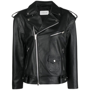 black lambskin grained texture silver-tone hardware wide notch lapels off-centre front zip fastening long sleeves straight hem cuff zips zip-fastening chest pocket two side zip-fastening pockets coin pocket Leather biker jacket Size and Fit - This piece fits true to size. We recommend you get your regular size. Model is 1,75m / 5ft 8in wearing size 40 (IT)