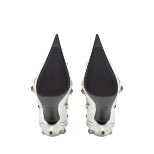 Cagole point-toe boots from BALENCIAGA featuring optical white, lambskin, pointed toe, stud embellishment, zip details, silver-tone hardware and stiletto heel. Le Cagole leather boots Size and Fit - Heel 9 cm
