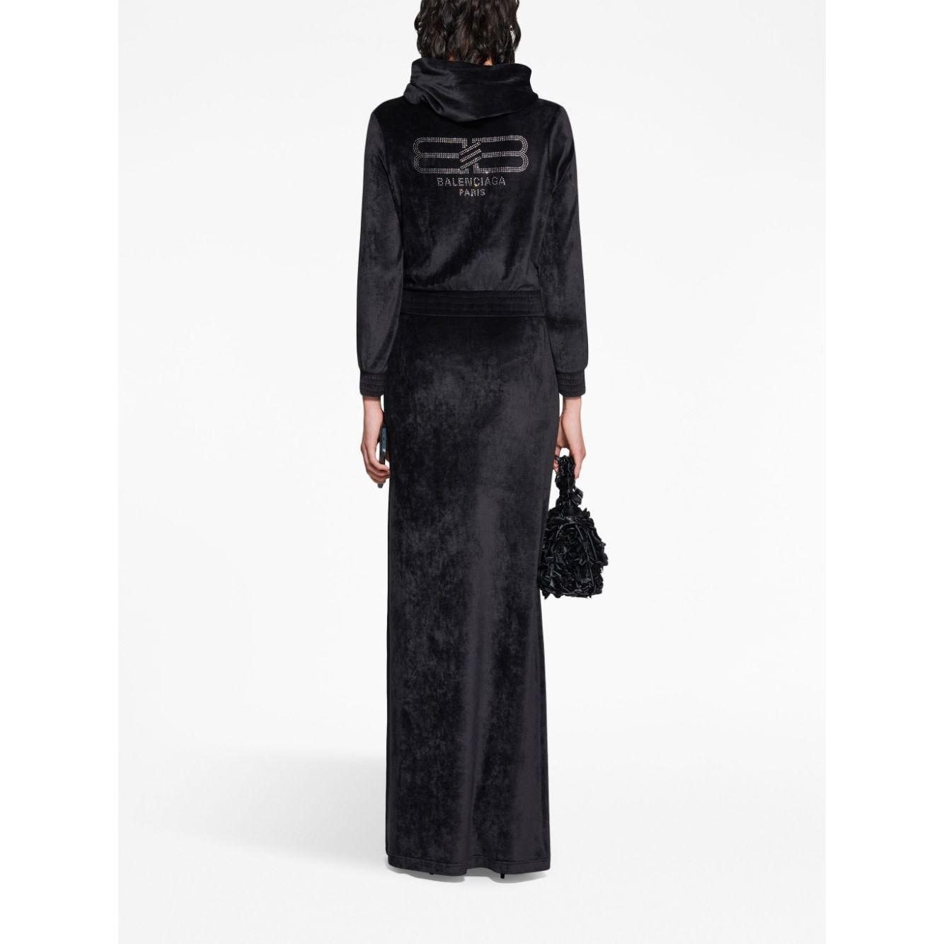 crystal-embebellished logo zipped hoodie from BALENCIAGA featuring black, velvet effect, crystal embellishment, classic hood, front zip fastening and ribbed cuffs and hem. We've partnered with Good On You — an independent agency that rates how brands perform in relation to their impact on the planet, people and animals, with a multi-criteria rating simplified to a five points scale. In order to be awarded our conscious label, larger brands need to score a minimum of four out of five ('Good'), while smaller brands must score at least three out of five ('It's a start'). This item comes from a brand rated four out of five ('Good') by Good on You. Please note, this is a brand-level rating and does not guarantee that this product is made with conscious materials.. Learn more about what makes a product Conscious on our Conscious Criteria page. Velvet zip-up hoodie Size and Fit - This piece fits true to size. We recommend you get your regular size. Model is 1,75m / 5ft 8in wearing size 36 (FR)