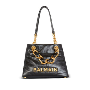 Balmain 1945 Soft PB-monogrammed crinkled small leather tote bag