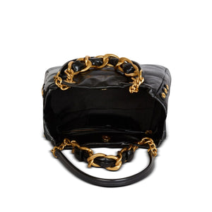 black calf leather embossed monogram pattern gold-tone logo lettering eyelet detailing two leather and chain-link shoulder straps two leather and chain-link top handles gusset detail concealed magnetic fastening main compartment internal zip-fastening pocket internal card slot metal feet 1945 small tote Size and Fit - .