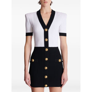 thigh-length V-necked knitted mini dress Size and Fit - This piece fits true to size. We recommend you get your regular size. Model is 1,75m / 5ft 8in wearing size 36 (FR)