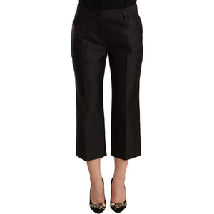 Dolce & Gabbana Black 100% Silk Flared Cropped Pants PAN72356 - 42