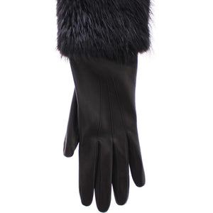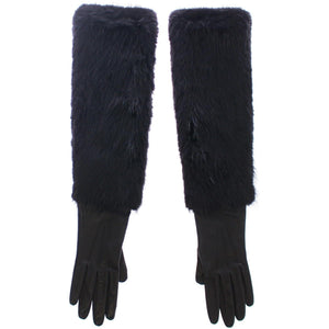 Dolce & Gabbana Black Beaver Fur Lambskin Leather Elbow Gloves