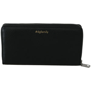 Dolce & Gabbana Black Blue Leather #DGFAMILY Zipper Continental Wallet