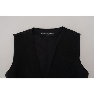 Dolce & Gabbana Black Brocade Button Down Sleeveless Vest Top