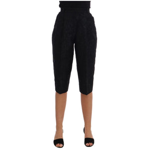 Dolce & Gabbana Black Brocade High Waist Capri Shorts