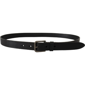 Dolce & Gabbana Black Calf Leather Logo Engraved Metal Buckle Belt