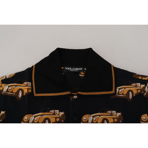 Dolce & Gabbana Black Car Print Short Sleeve Polo T-shirt