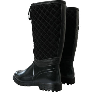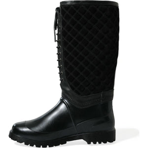 Dolce & Gabbana Black Chioggia Rubber Suede Rain Boots Shoes