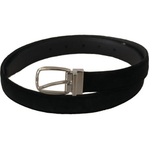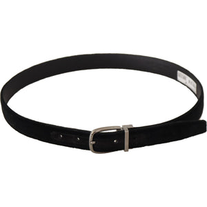 Dolce & Gabbana Black Classic Velvet Silver Tone Metal Buckle Belt
