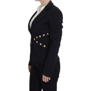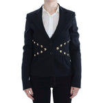 Exte Black Cotton Stretch Gold Studded Blazer Jacket