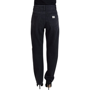 Dolce & Gabbana Black Cotton Tattered High Waist Denim Jeans