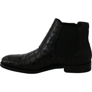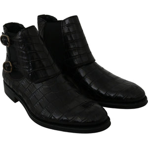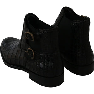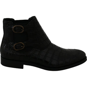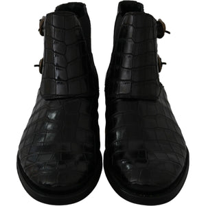 Dolce & Gabbana Black Crocodile Leather Derby Boots Shoes