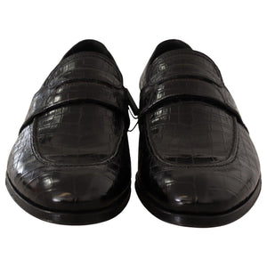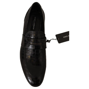 • Dolce & Gabbana Black Crocodile Leather Slip On Moccasin Shoes