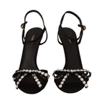 Dolce & Gabbana Black Crystals Ankle Strap Heels Sandals Shoes LA9693-40