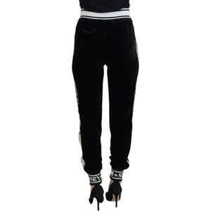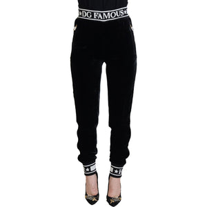 Dolce & Gabbana Black DG Logo Velvet Trouser Pants