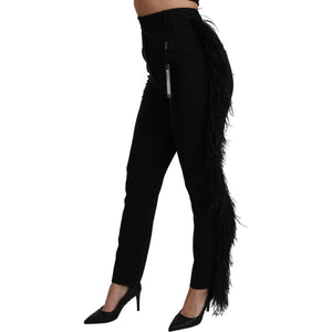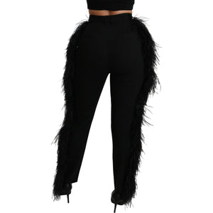 Dolce & Gabbana Black Feather Straight High Waist Wool Pants