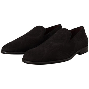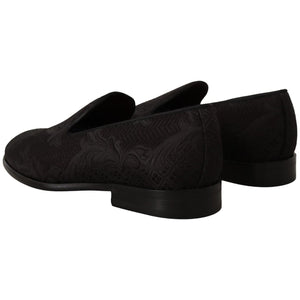 Dolce & Gabbana Black Floral Brocade Slippers Loafers Shoes