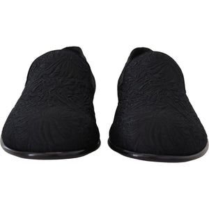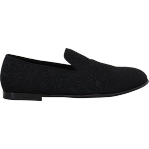 Dolce & Gabbana Black Floral Jacquard Slippers Loafers Shoes