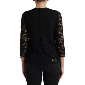 Dolce & Gabbana Black Floral Lace Blouse T-shirt Staff Top
