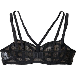 Dolce & Gabbana Black Floral Lace Nylon Balconcino Bra Underwear