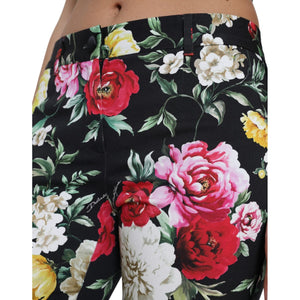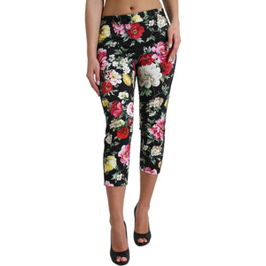 Dolce & Gabbana Black Floral Print Mid Waist Cropped Pants