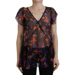 Dsquared² Black Floral Print Short Sleeves V-neck Blouse Top