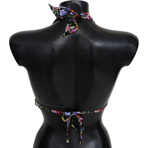 Dolce & Gabbana Black Floral Print Swimsuit Beachwear Bikini Tops