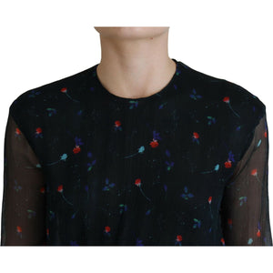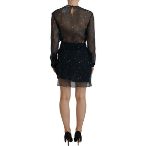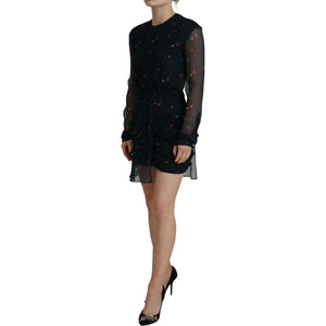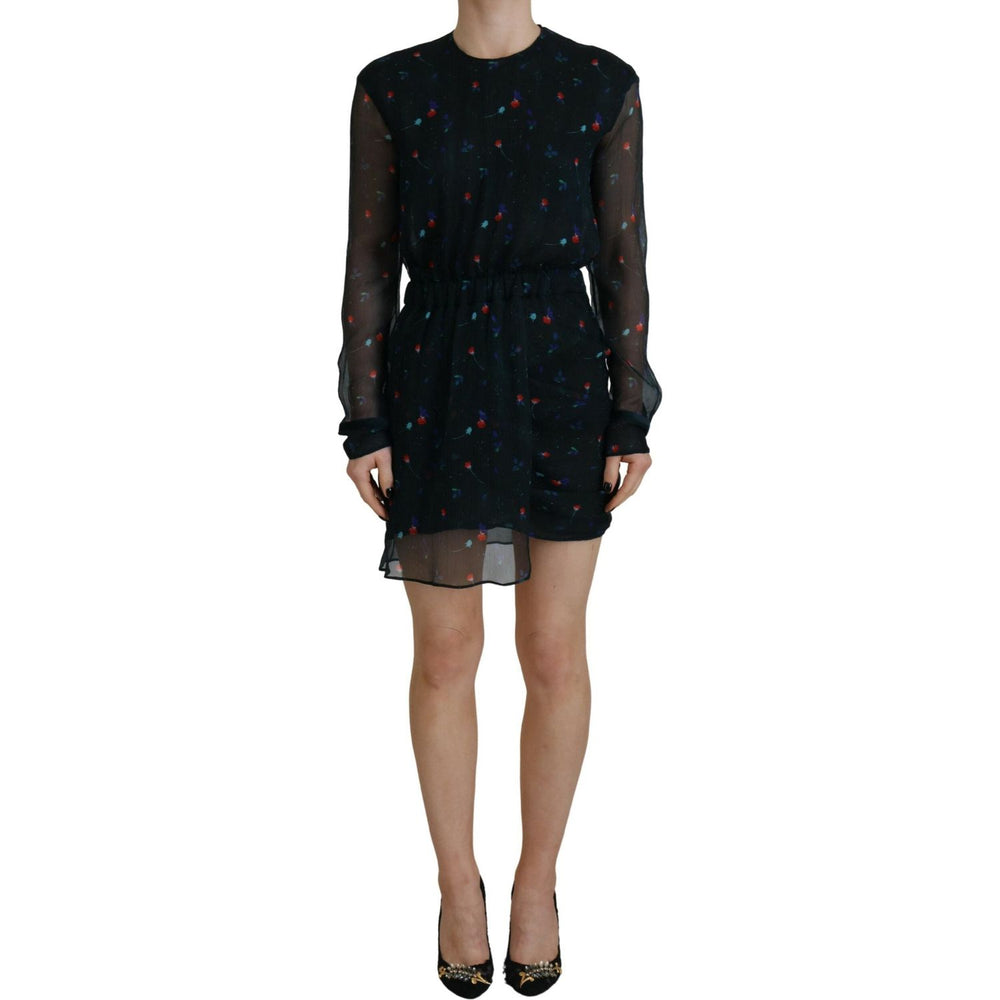 Dsquared² Black Floral Silk Long Sleeves Sheath Mini Dress