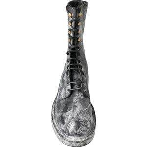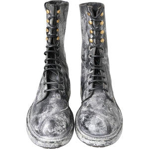 Dolce & Gabbana Black Gray Leather Mid Calf Boots Shoes
