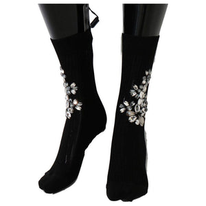 Dolce & Gabbana Black Knitted Floral Clear Crystal Socks