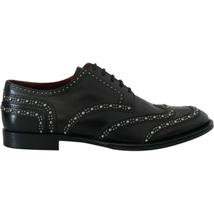 Dolce & Gabbana Black Leather Derby Dress Studded Shoes