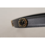 Dolce & Gabbana Black Leather Embellished Crystal Logo Belt