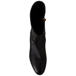 Dolce & Gabbana Black Leather Flats Logo Short Boots Shoes
