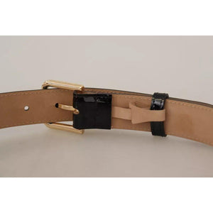 Dolce & Gabbana Black Leather Gold Metal Logo Engraved Buckle Belt