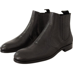 Dolce & Gabbana Black Leather Lizard Skin Ankle Boots