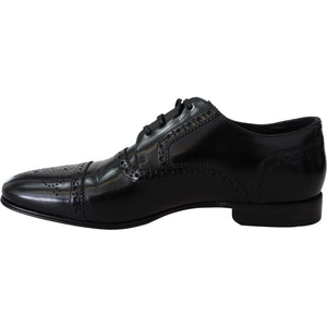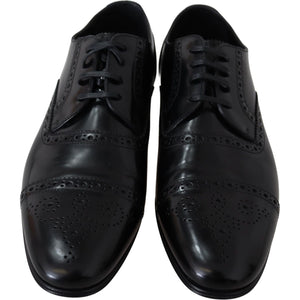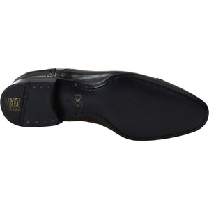 Dolce & Gabbana Black Leather Men Derby Formal Loafers Shoes