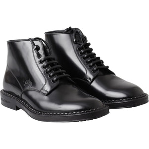Dolce & Gabbana Black Leather Men Short Boots Lace Up Shoes