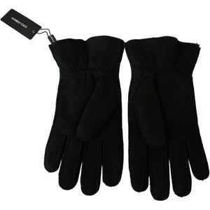 Dolce & Gabbana Black Leather Motorcycle Biker Mitten Gloves