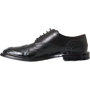Dolce & Gabbana Black Leather Oxford Wingtip Formal Men Shoes
