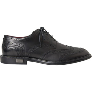 Dolce & Gabbana Black Leather Oxford Wingtip Formal Men Shoes